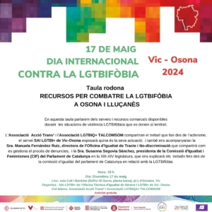 Home/Osona Acció Social se suma al Dia Internacional contra la LGTBIfòbia/cartell específic taula rodona. 17M